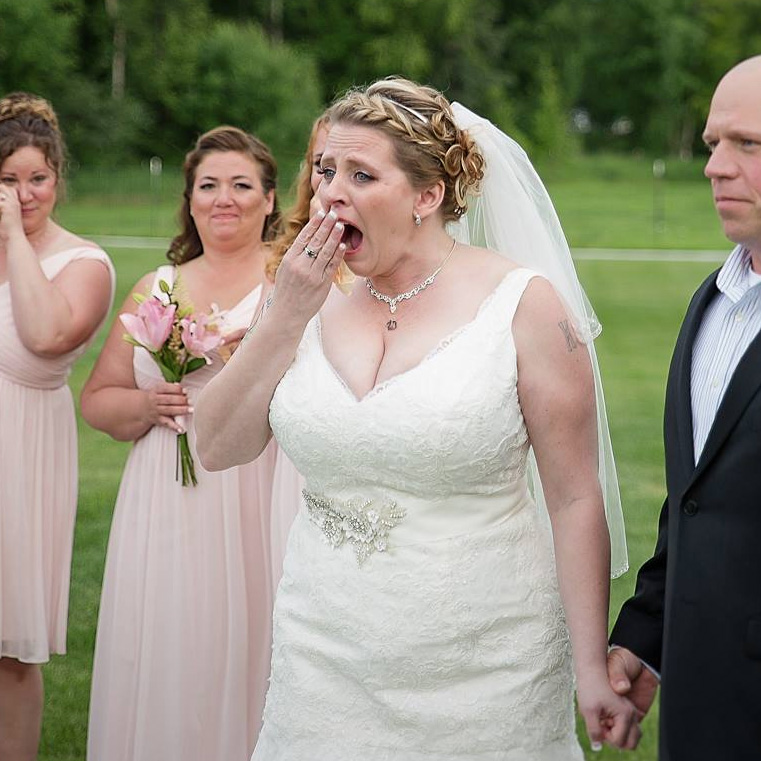 A wedding photographer has captured the beautiful moment a bride who lost her son two years prior received a bittersweet surprise on her wedding day.